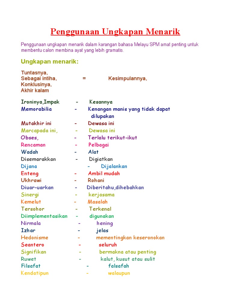 Doc Frasa Ayat Ungkapan Yang Menarik Dan Matang Untuk Karangan Bahasa Melayu Spm Kong Siew Ling Academia Edu