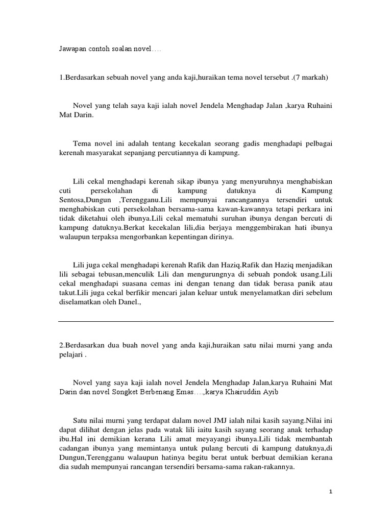 Contoh Jawapan Soalan Novel Spm Berdasarkan Soalan Pdf